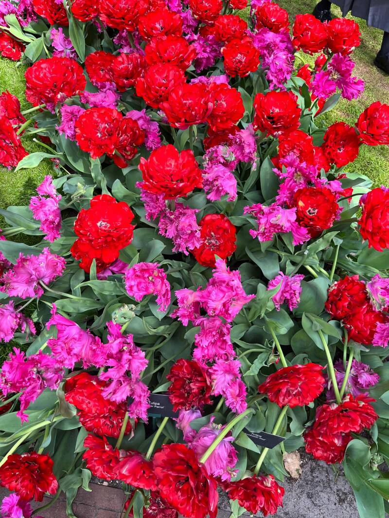 It’s almost overwhelming in the best possible way. Everywhere you turn, there’s another variety of tulip you didn’t know existed. Fringed petals that look delicately cut by hand. Deep burgundy blooms that appear almost black. Soft pastel pinks, bold oranges, rich purples, and bright yellows flowing through the landscape.
